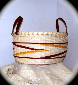 THREE DIVAS-Named for three best friends this basket starts with a Nantucket style base and is a simple double wall. The inside basket is finished first. Keep your shape nice and round on the inside and the outside will also have that same nice shape. The outside has pops of contrasting colors in overlays and triple weave.The finished size is approximately 13.5" diameter by 7.5" tall.